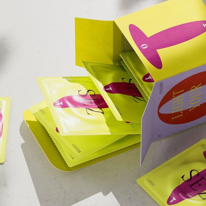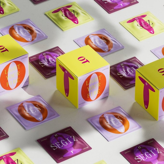 The main idea of “OT” is to be a symbol of conscious and harmonious relationships between a couple, promoting the principles of equality and mutual understanding in the intimate sphere. From the Kazakh language, “OT” is translated as “fire” – this is a play on words referring to the feeling of passion. The letter “O” represents a woman, and the letter “T” – a man. The metaphor is reflected in the packaging, in the plasticity of the symbols and in their dynamism.