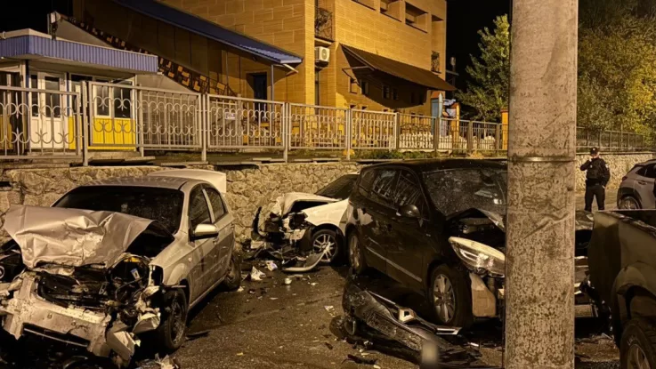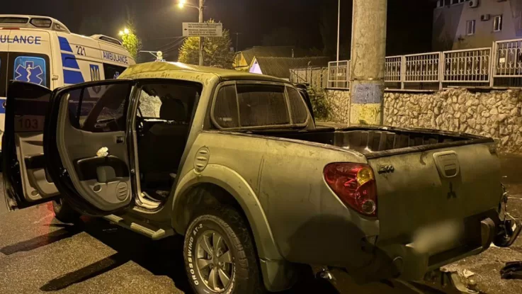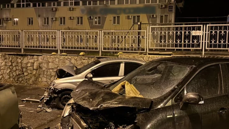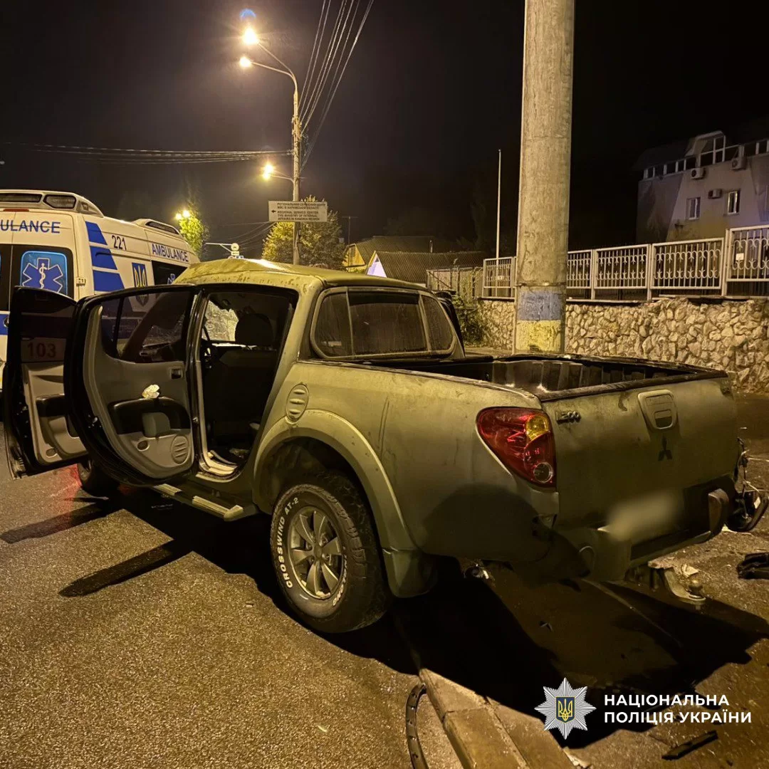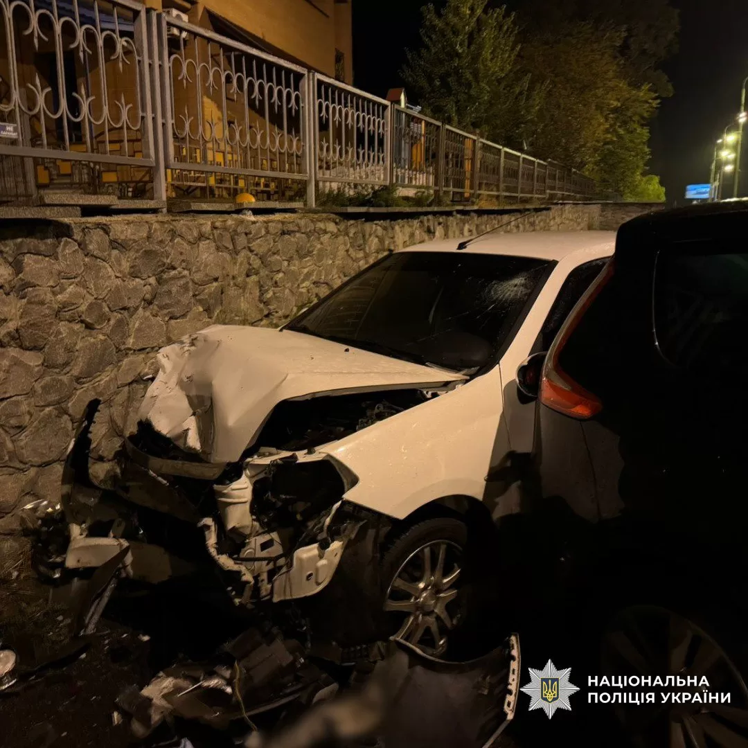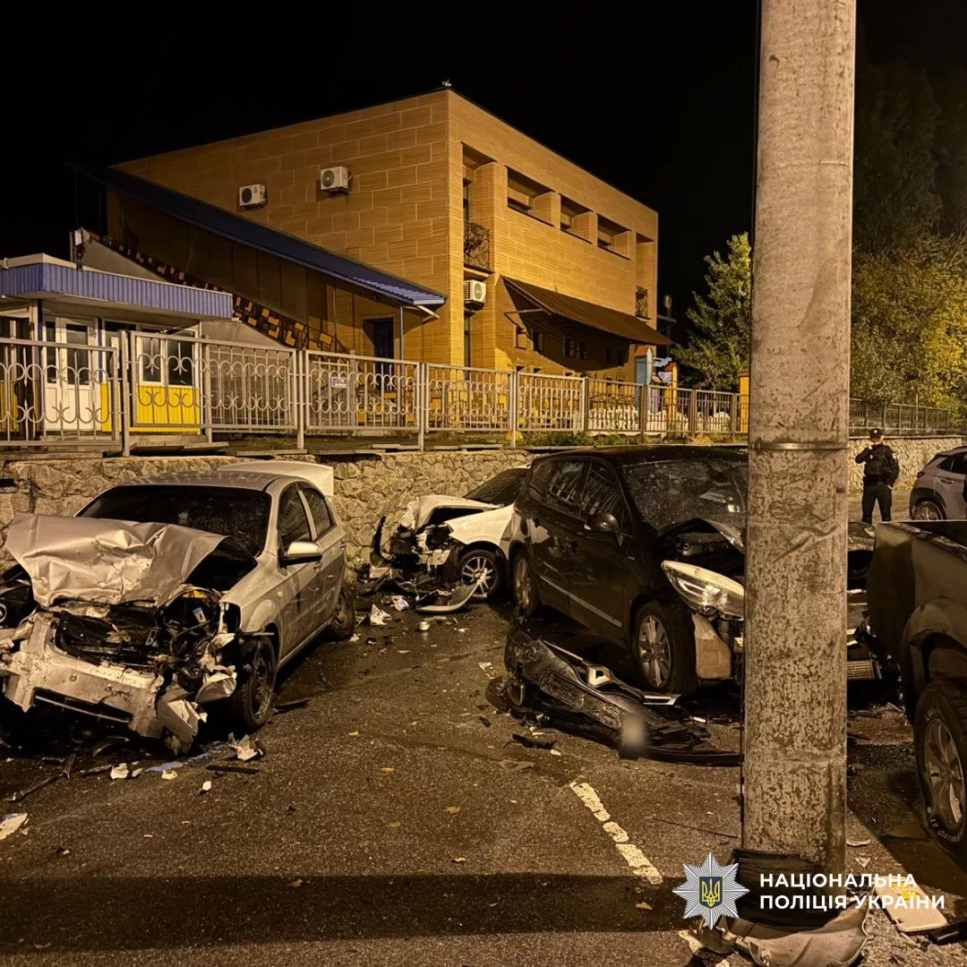The accident occurred on October 11 at approximately 9:10 PM in the Kyivskyi district of the city. According to preliminary reports, the 47-year-old driver of a Mitsubishi lost control, veered off the road through the oncoming lane, and collided with a parked Renault Scenic and Chevrolet. The impact caused the vehicles to bounce off and collide with another vehicle, a Renault Simbol.