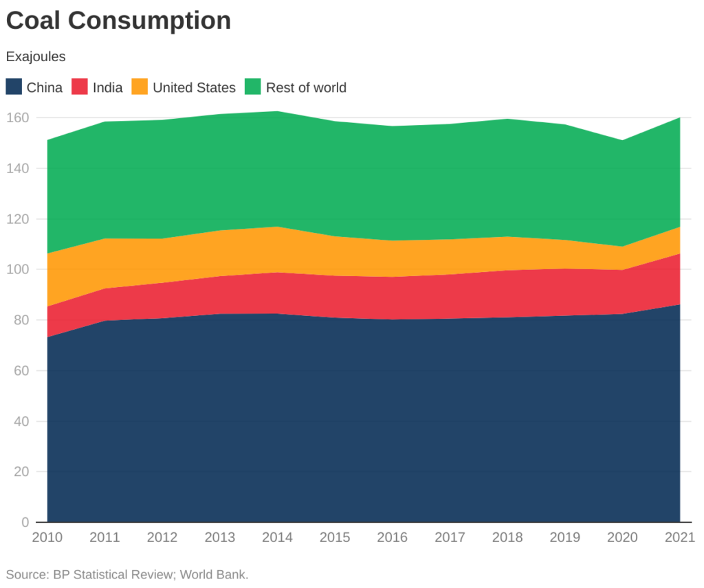 Despite sluggish economic growth in China due to COVID restrictions, global coal use hit a record high in 2022. This surge was driven by a significant increase in consumption from India (10%) and Europe (5%). In Europe, power plants switched from natural gas to coal to compensate for lower production from other sources like nuclear and hydro. The US, however, saw a decrease in coal consumption (8%) during the same period. This is because natural gas prices didn’t rise as dramatically as in Europe, limiting the incentive for power plants to switch fuels.