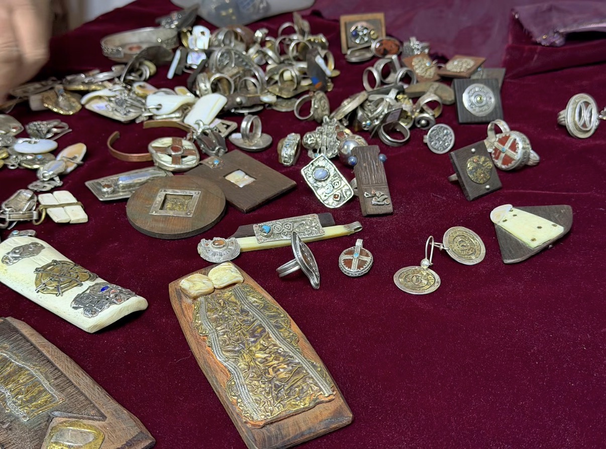 Это относится и к десяткам ювелирных украшений, которые Баширов выложил для всеобщего обозрения The Astana Times. Среди коллекции — тяжелые серебряные наперстки, кольца с бирюзовыми камнями и даже старинная серебряная зубочистка.